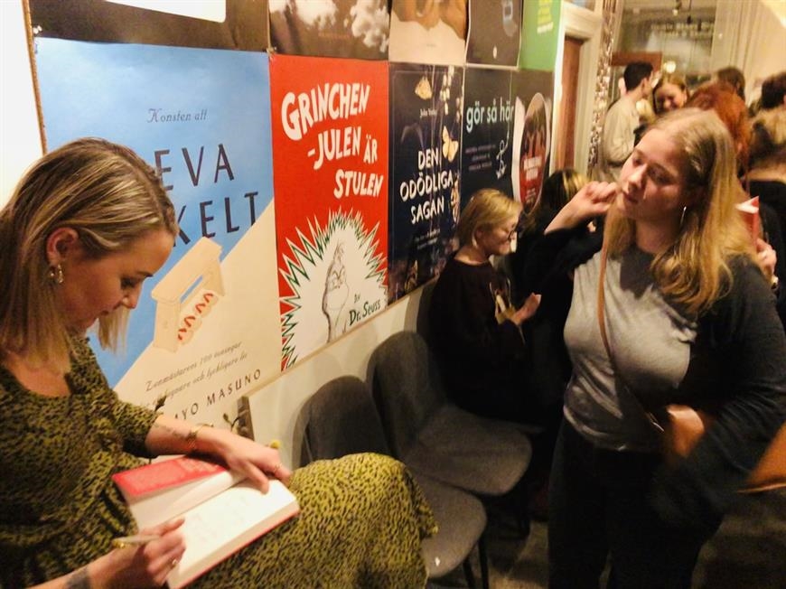 Många stod i kö för att få sitt exemplar av boken signerat.