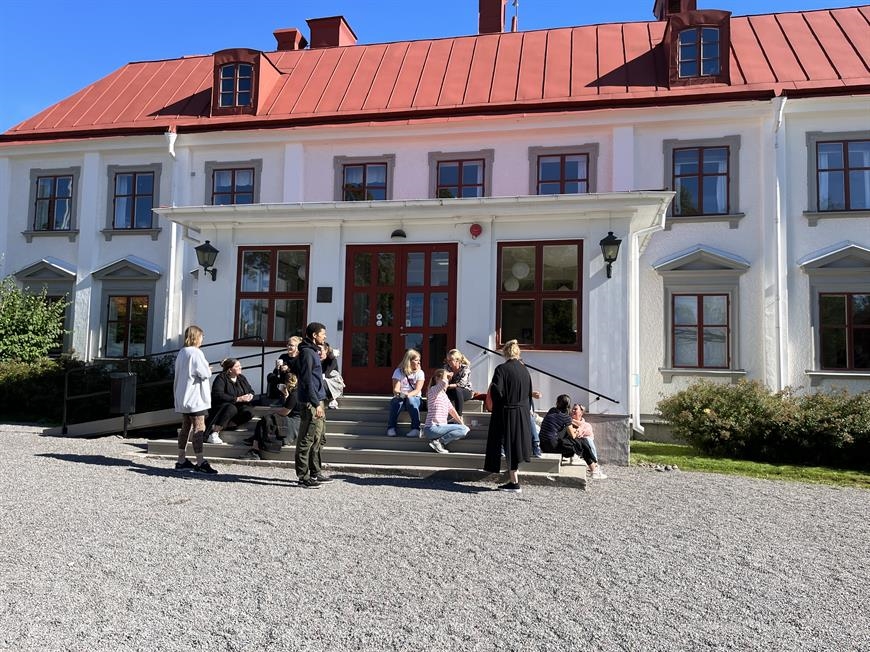 Skolan ligger en kort promenad från Jakobsbergs centrum. Sedan 1919 har vi hållit till i en gammal herrgård med egen lunchrestaurang. De hundraåriga ekarna ramar in vår fina samlingssal där vi ofta träffas för gemensamma föreläsningar.